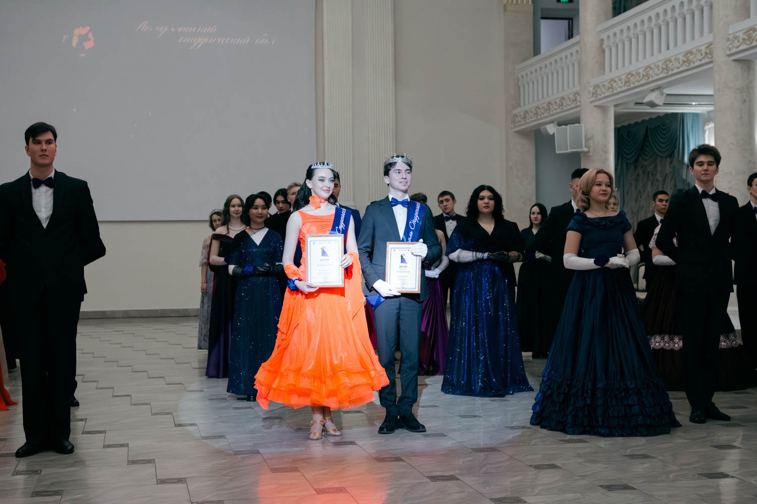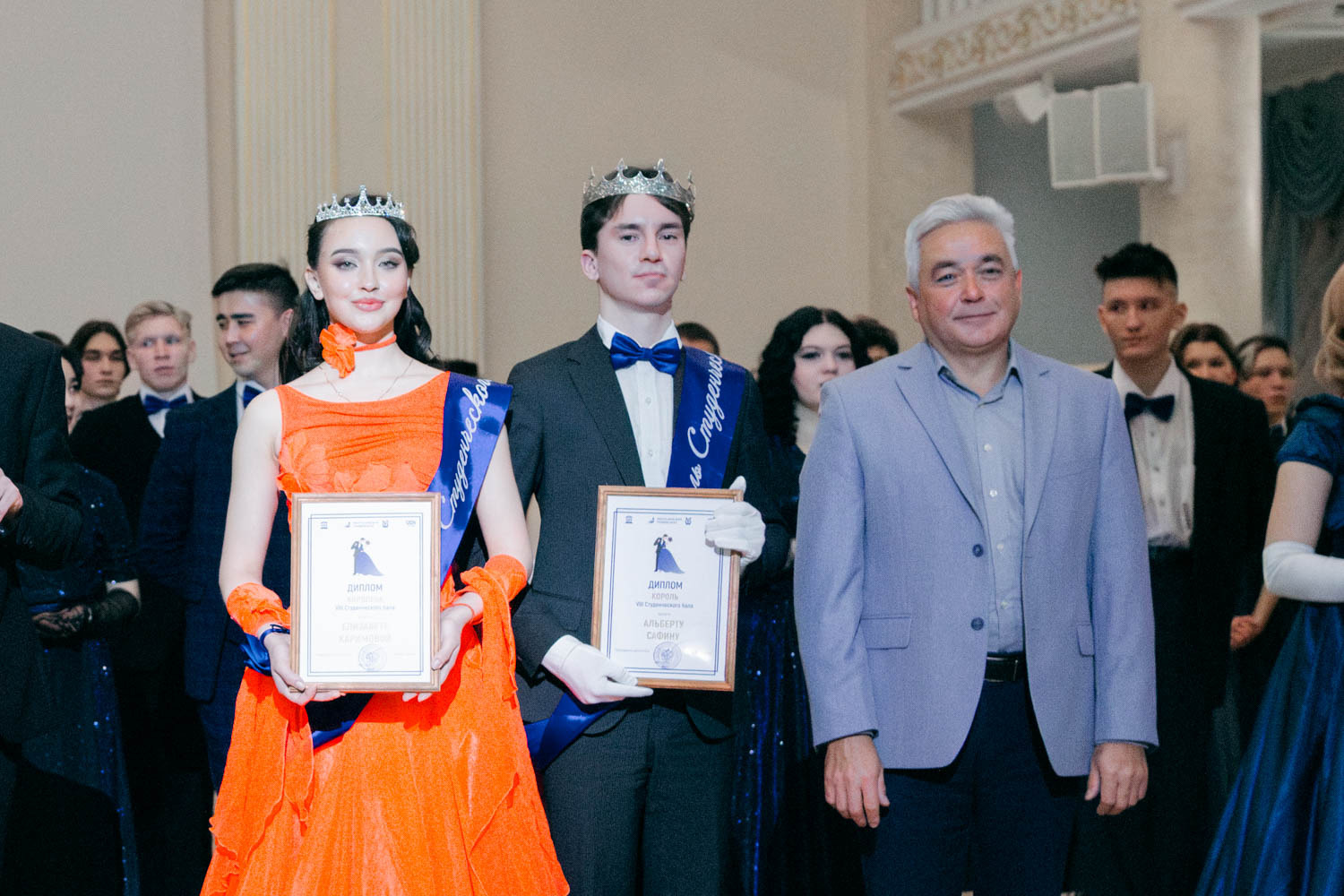Королем бала стал студент УГНТУ Альберт Сафин, королевой – студентка 3 курса БГМУ"Клиническая психология") Елизавета Каримова. Ребята поделились впечатлениями от мероприятия и от неожиданной победы. Оба занимаются танцами и поддерживают друг друга в данном направлении.