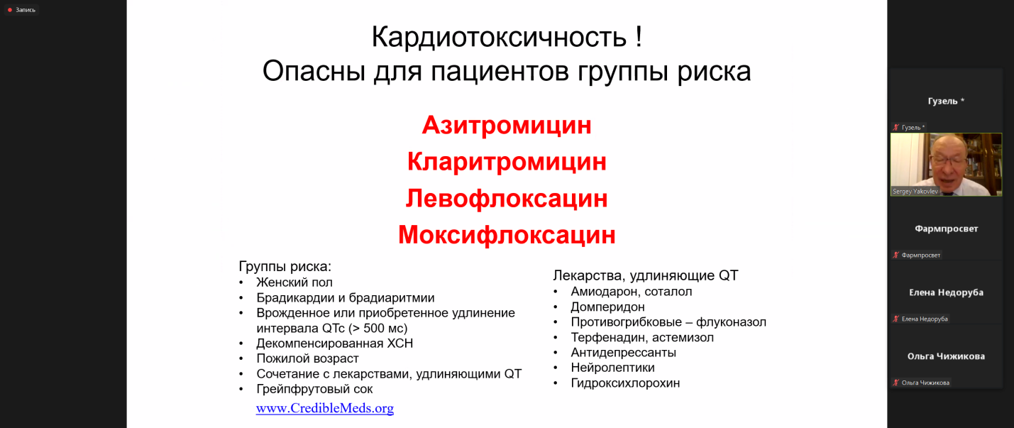 Яковлев Сергей Владимирович, доктор медицинских наук, профессор кафедры клинической фармакологии и терапии имени академика Б.Е. Вотчала Российской медицинской академии непрерывного профессионального образования МЗ РФ (г. Москва, Россия): «Актуальные проблемы антибактериальной терапии респираторных инфекций с учетом тенденций роста антибиотикорезистентности. Ренессанс 16-членных макролидов» и «Что считать надежной терапией инфекций мочевыводящих путей?»;