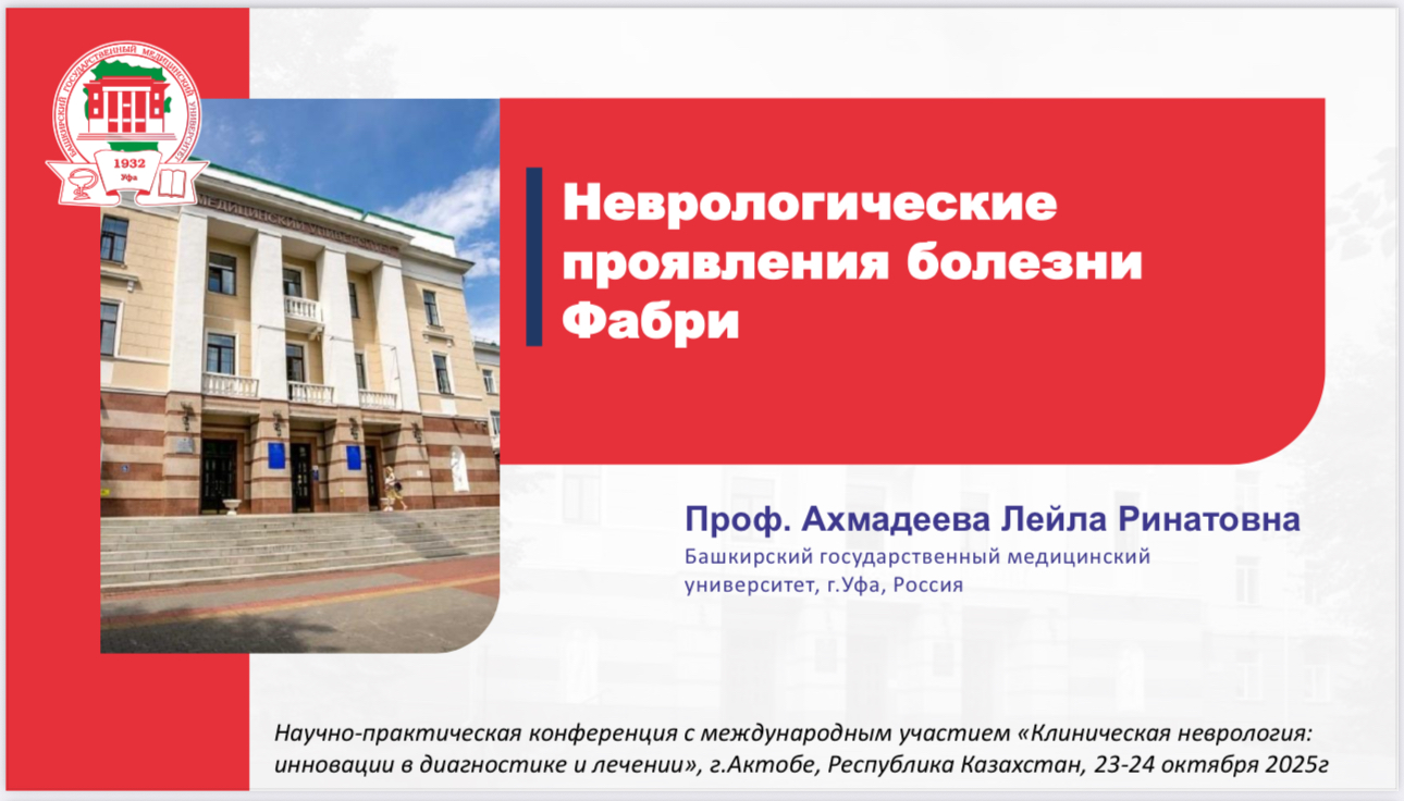 В числе докладчиков - врачи и ученые разных стран. Вчера было заслушано выступление профессора кафедры неврологии БГМУ Лейлы Ахмадеевой о неврологических проявлениях редкого генетического заболевания - болезни Фабри, которое вызвало большой интерес слушателей.