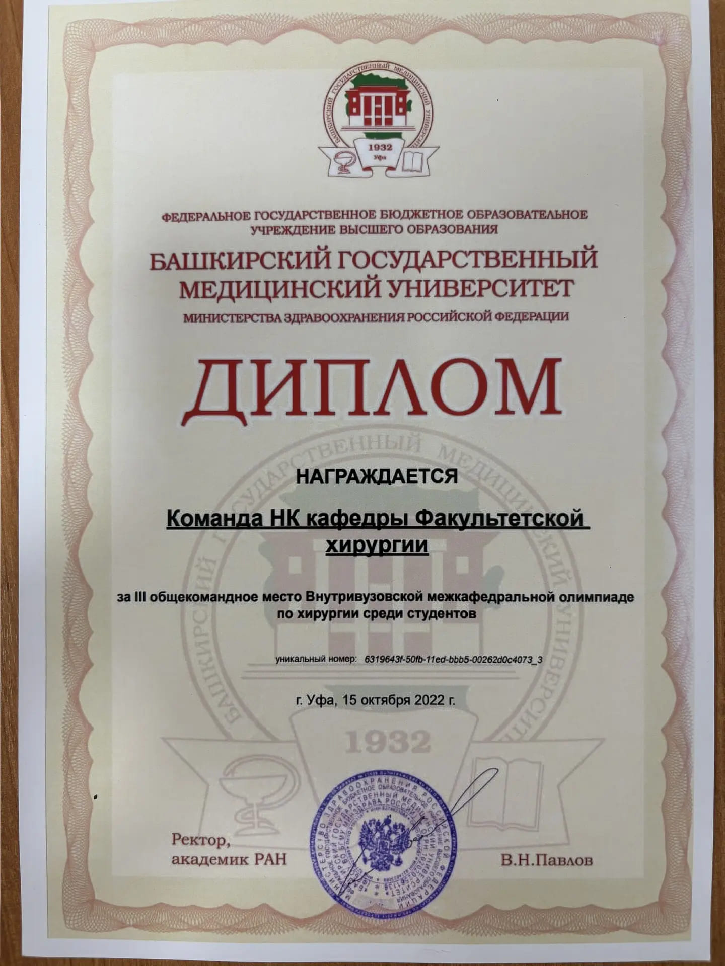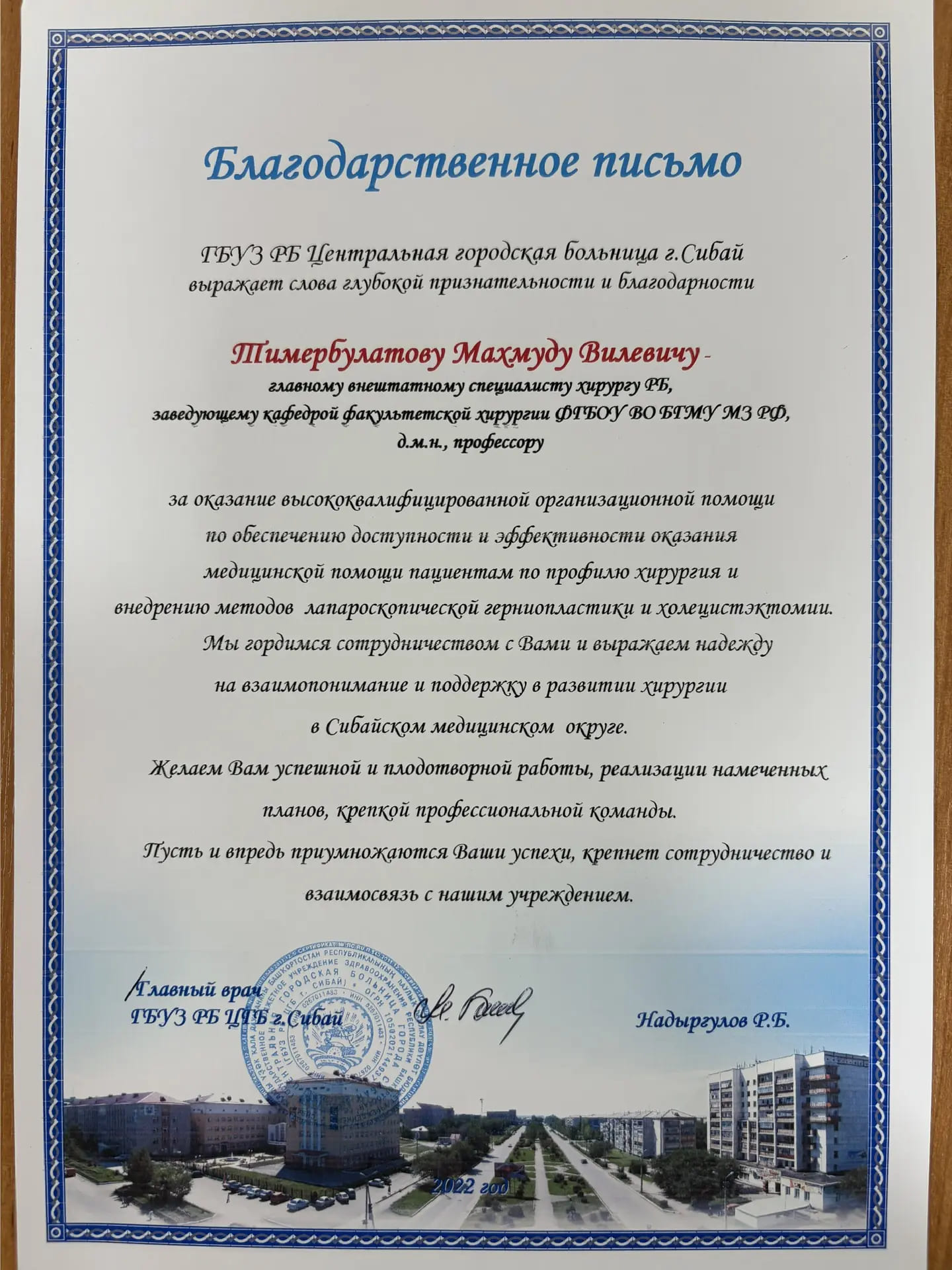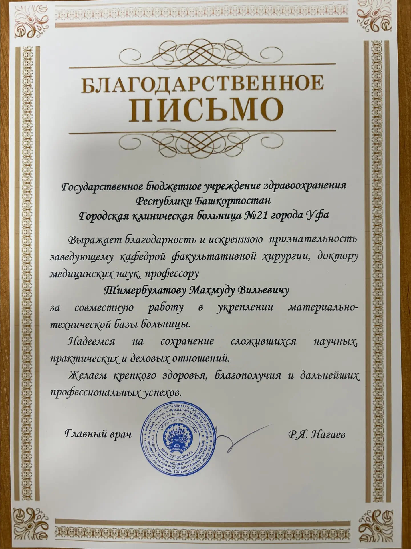 23.3.83 г. – в связи с закрытием на капитальный ремонт хирургического корпуса РКБ временно разместить кафедру хир. Бол. № 2 (Галеев) на базе хирургических отделений уфимских городских больниц №8 и др. (М.Х. Камалов). №714-Д 31.87.83 г. – МЗ РБ