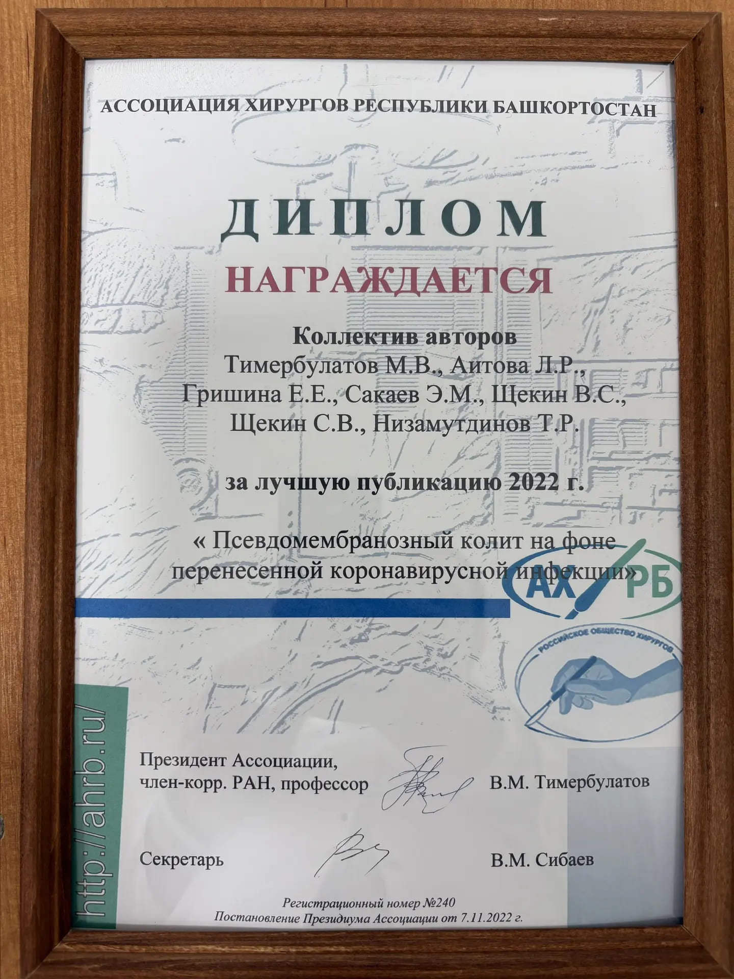 Приказ № 1009-д,180 – 23.08.82 г. – разместить на базе открываемой ГКБ № 21 каф. Общ. Хир.