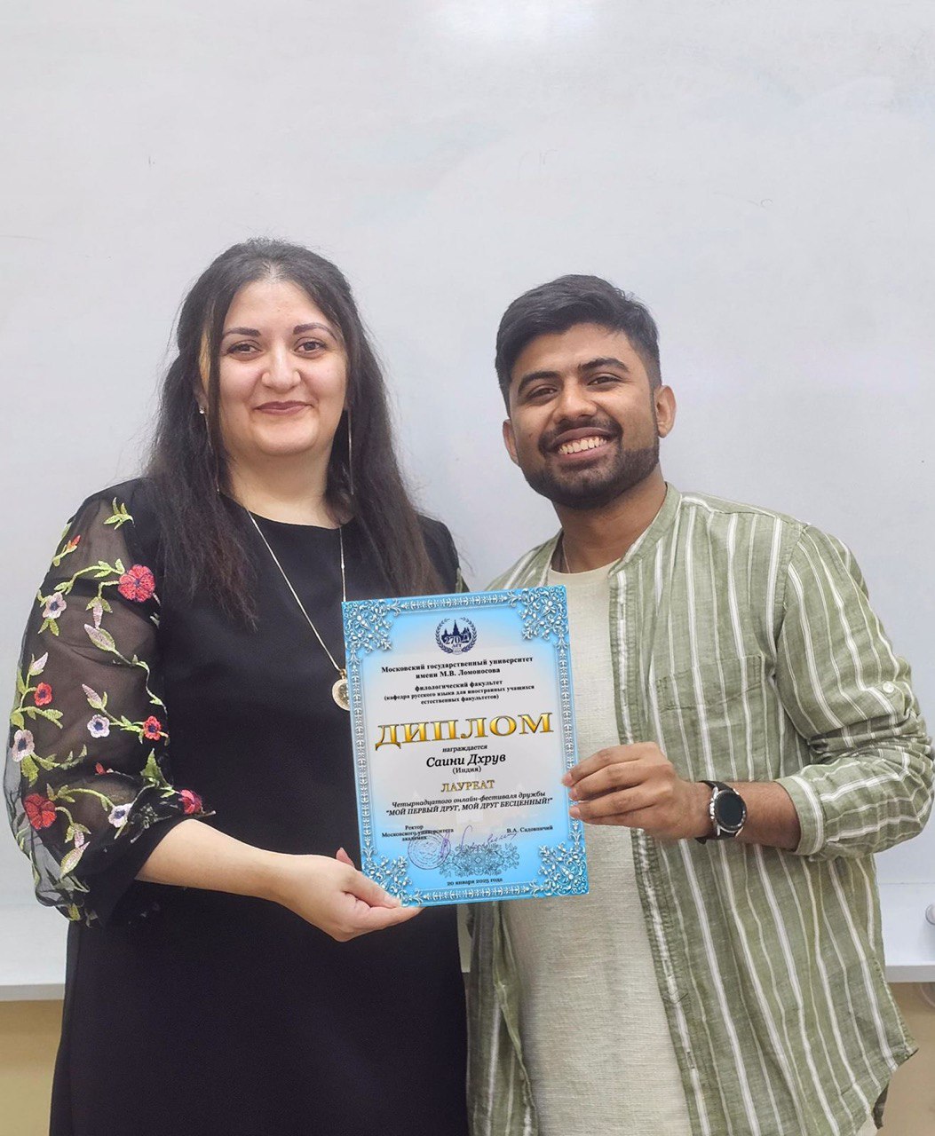 The guys prepared video performances in Russian in the nomination "Melodeclamation of a poem about friendship, including poets of the Pushkin era." Saini Dhruv performed with Alexander Pushkin's poem "My First Friend," and Raj Snekh read Andrei Dementiev's poem "A Friend Is Known in Luck." The videos of our students were among the best and were included in the online parade of presentations of selected performances.