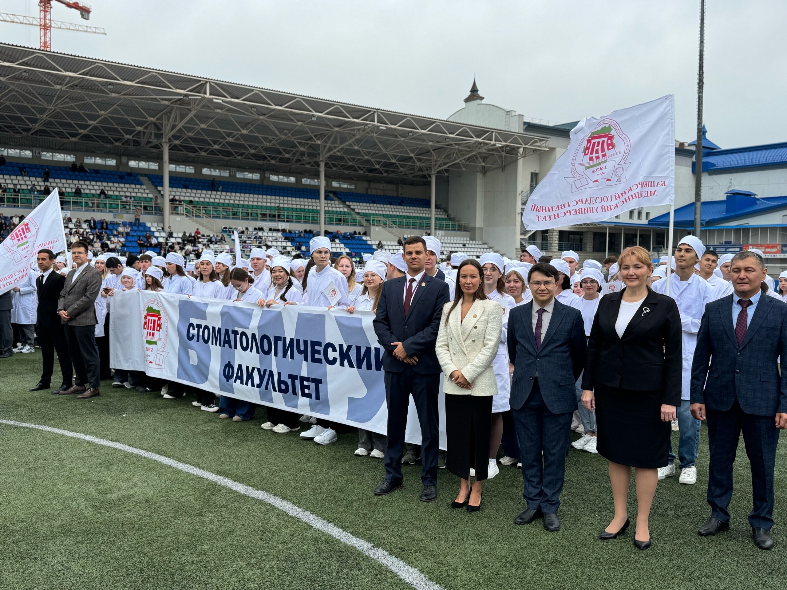 Freshmen of the Bashkir State Medical University solemnly celebrated the Day of Knowledge at the Dynamo stadium. For the first time, the guys put on white coats, symbolizing the beginning of their responsible and noble path in medicine.