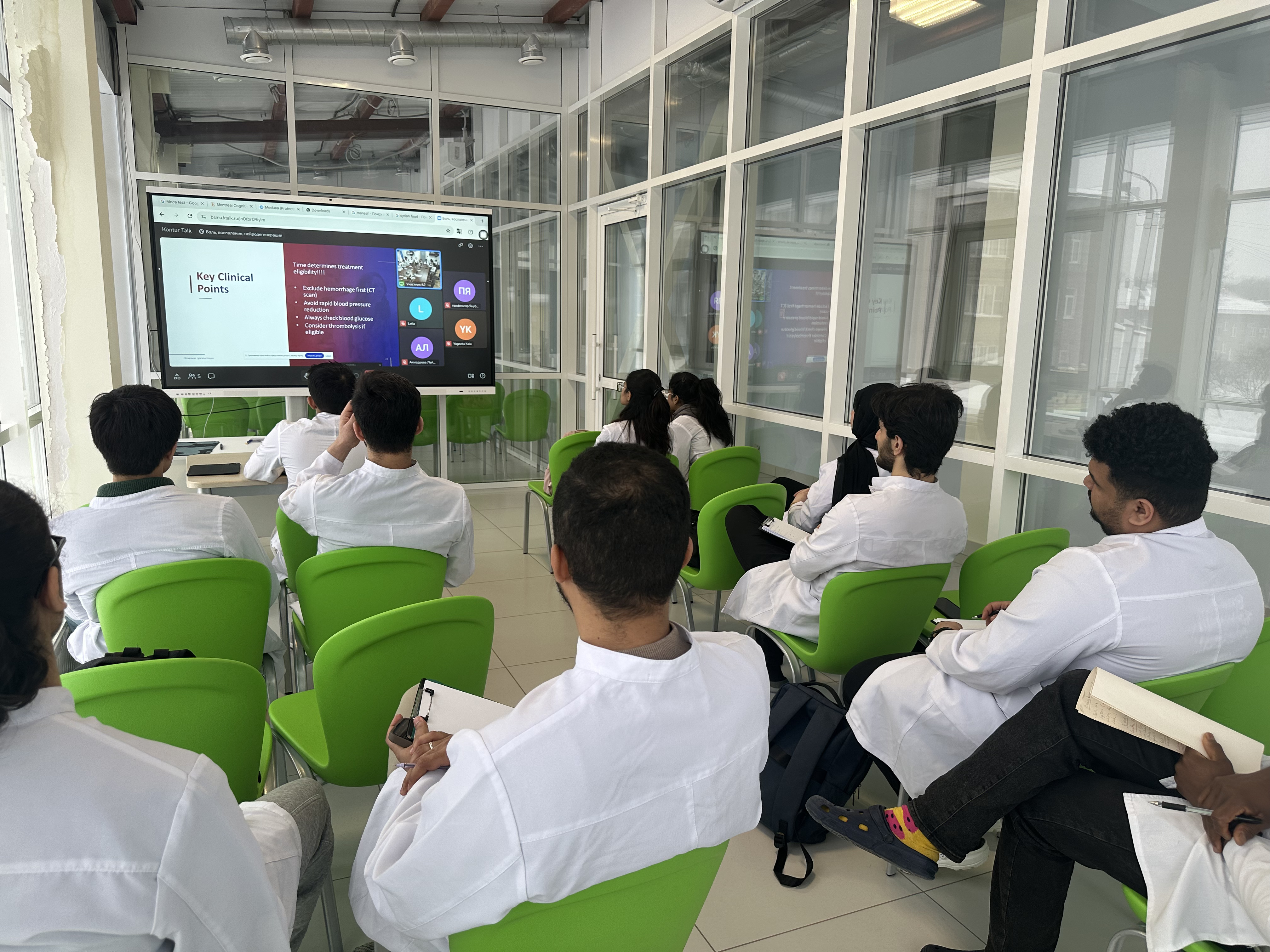 In one of the training sessions, students from Tashkent also participated, presenting several fascinating clinical cases in English, along with their own algorithm for examining patients with cerebral stroke.