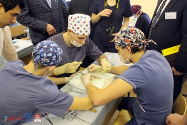 According to the plan of the most important educational events in organizations under the jurisdiction of the Ministry of Healthcare of the Russian Federation for 2017, on 5-6 December the all-Russia student Olympics on surgery with international participation was held on the basis of Bashkir State Medical University. Twenty-one teams attended the competition, including students of the Medical Faculty of Mannheim University, Heidelberg University (Germany), Sichuan University, Harbin Medical University (China), I. K. Akhunbaeva Kyrgyz State Medical Academy, as well as international team of the University consisting of international students from India, Tajikistan and Armenia. The aim of the Olympics: to find and to give an opportunity for professional growth to the most talented, capable, creative students - said with a welcoming speech Valentin N. Pavlov, rector of BSMU, corresponding member of RAS, at the opening ceremony. Today at the Olympics we present for the first time in Russia the developed model of accreditation of surgical profile specialists. After the brilliant performance of Gareev Rustam Nosirovich, doctor at the Ambulance Hospital, who sang the anthem of the surgeon of his own composition, the draw for teams was held, and participants started the tasks of the Olympics. Within two days, the participants performed a competitive task: suturing wounds of the heart, imposing a coronary artery shunt, the formation of "s" shaped tank from the small intestine, the competition cardiopulmonary resuscitation, the participants showed their skills on a virtual simulator LapSim for conducting nephrectomy, anatomical contest. The top contest was the endosurgicalvideo-assisted surgery. Four teams who received the highest number of points in the previous stages were admitted to this task. The participants had an operation for suturing "perforations" and cholecystitis ectomy on biological models. Nowadays many legal barriers exist for the practical work of students during the training period, in many regions there is no access to the patients and Universities have not got their clinical bases. This certainly somehow dampens the interest of young people in the choice of profession, especially surgical, - expressed his opinion academician Valeriy Alekseevich Kubyshkin, the Chairman of the jury, head of the Surgery Department at the Fundamental Medicine Faculty of Moscow State University. - And exactly such Olympics are able to spark the interest among students for this specialty.