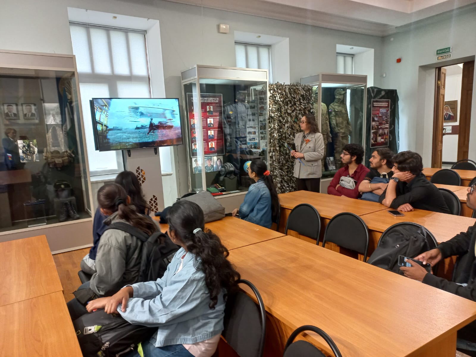 В ходе экскурсии студенты смогли совершить путешествие в военную историю, увидеть экспонаты, дающие наглядную информацию о подвигах жителей Башкортостана. В частности, иностранные студенты узнали о Героях - М.М. Шаймуратове и Т.Т. Кусимове и их подвигах. Большой интерес вызвал у студентов раздел экспозиции, посвященный работе эвакогоспиталей республики, где врачами были разработаны и внедрены сотни новых методов лечения и реабилитации.