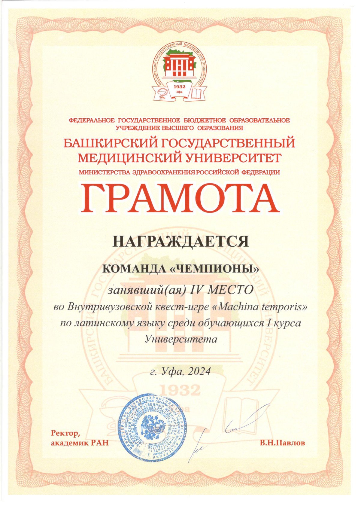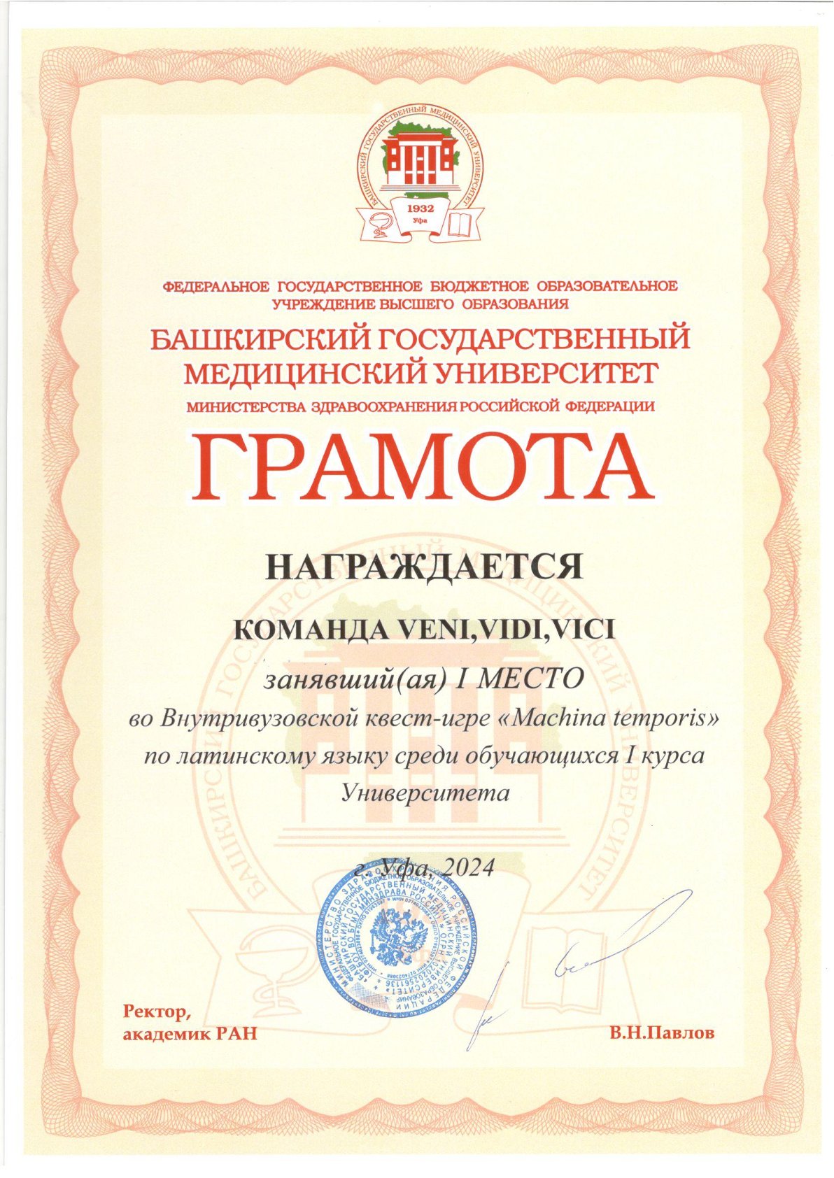 3 июня на кафедре иностранных языков прошло награждение призеров и победителей Внутривузовской Квест-игры «Machina temporis» по латинскому языку среди обучающихся первого курса Университета.