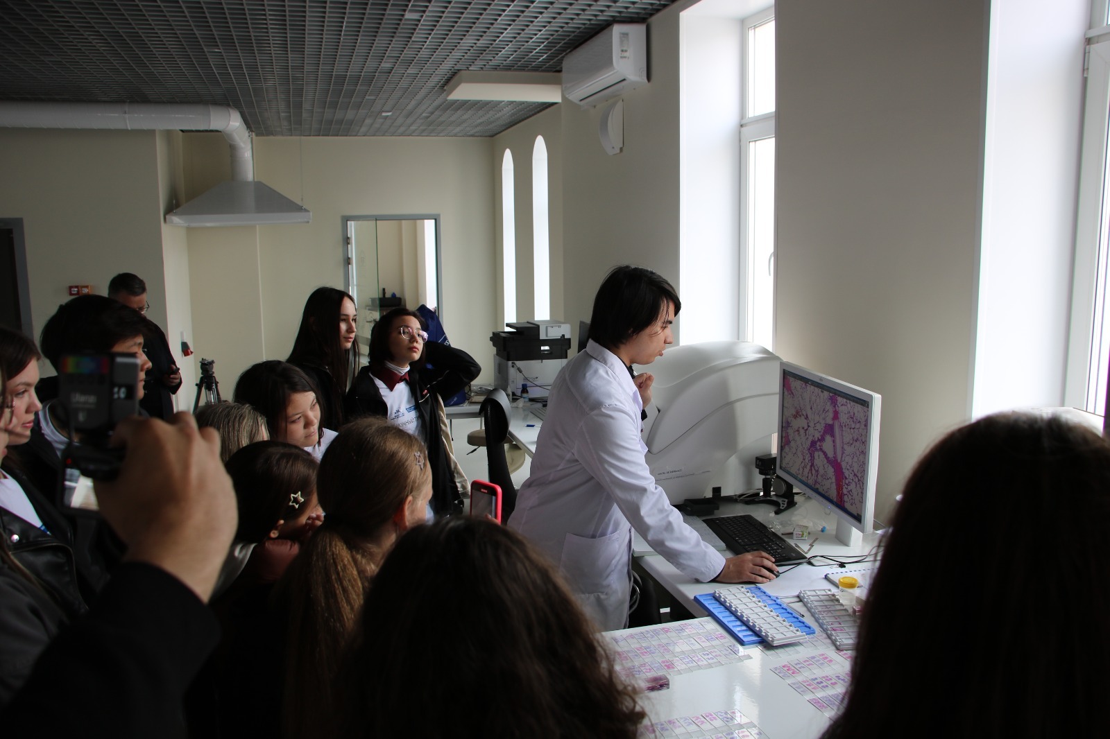 Приблизиться к науке молодым ребятам помогли ученые-медики - вместе с учеными школьникам удалось превратить кусочек ткани в стеклопрепарат. Такую возможность молодым туристам предоставила «Научно-морфологическая лаборатория» Института фундаментальной медицины БГМУ.