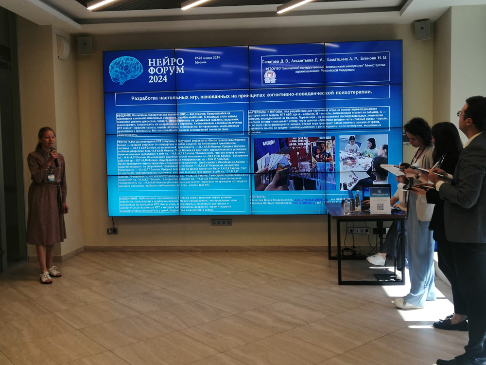 - В работе секции Молодые ученые и в конкурсе научных работ приняли участие Наталья Блинова и Диана Сапатова. Они представили научные разработки, посвященные созданию настольных игр, повышающих стрессоустойчивость у молодежи. Игры основаны на принципах когнитивно-поведенческой психотерапии.