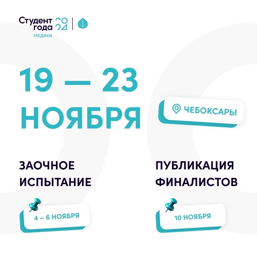 Специальный открытый трек пройдёт с 19 по 23 ноября в Чебоксарах и объединит 100 студентов медицинских специальностей со всей страны по 7 номинациям: «Лечебное дело», «Педиатрия», «Стоматология», «Медико-профилактическое дело», «Фармация», «Сестринское дело» и «Молодой медик года».