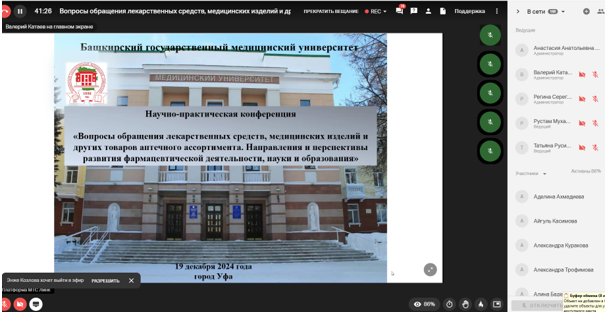 19 декабря состоялась Международная научно - практическая конференция «Вопросы обращения лекарственных средств, медицинских изделий и других товаров аптечного ассортимента. Направления и перспективы развития фармацевтической деятельности, науки и образования». Мероприятие проходило с целью расширения международных связей и межвузовского взаимодействия в сфере науки, образования, внедрения инновационных подходов в образовательной и научной деятельности, в рамках реализации непрерывного медицинского и фармацевтического образования, совершенствования знаний, умений и компетенций специалистов с фармацевтическим образованием в области современных основ законодательства, в рамках реализации программы стратегического академического лидерства «Приоритет-2030» .