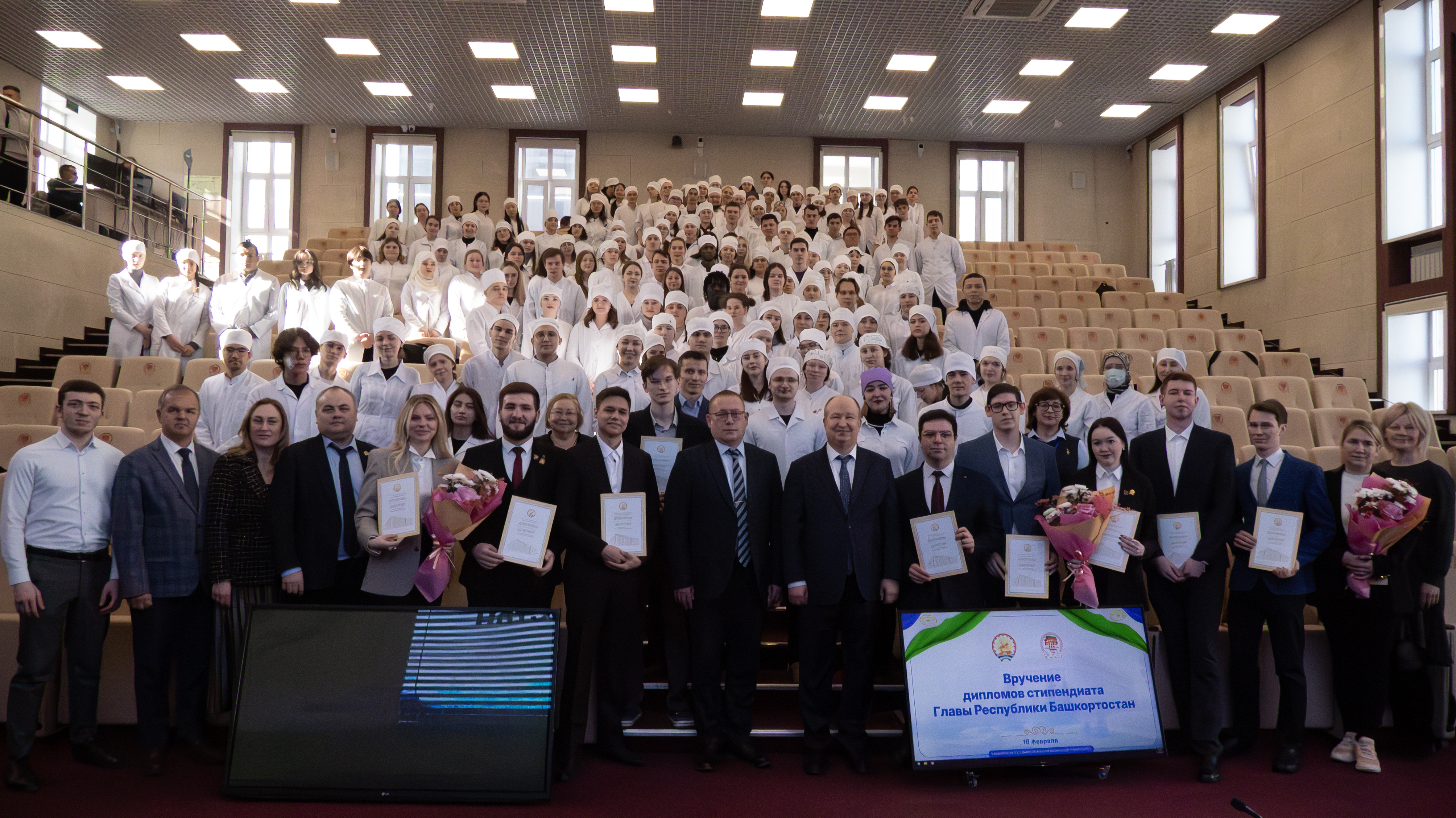В лекционном зале 8 корпуса БГМУ Минздрава России состоялось вручение стипендий Главы РБ студентам и аспирантам Университета. Наградили студентов заместитель руководителя Администрации Главы РБ Искандер Ахметвалеев и ректор медуниверситета, академик РАН, профессор Валентин Павлов.