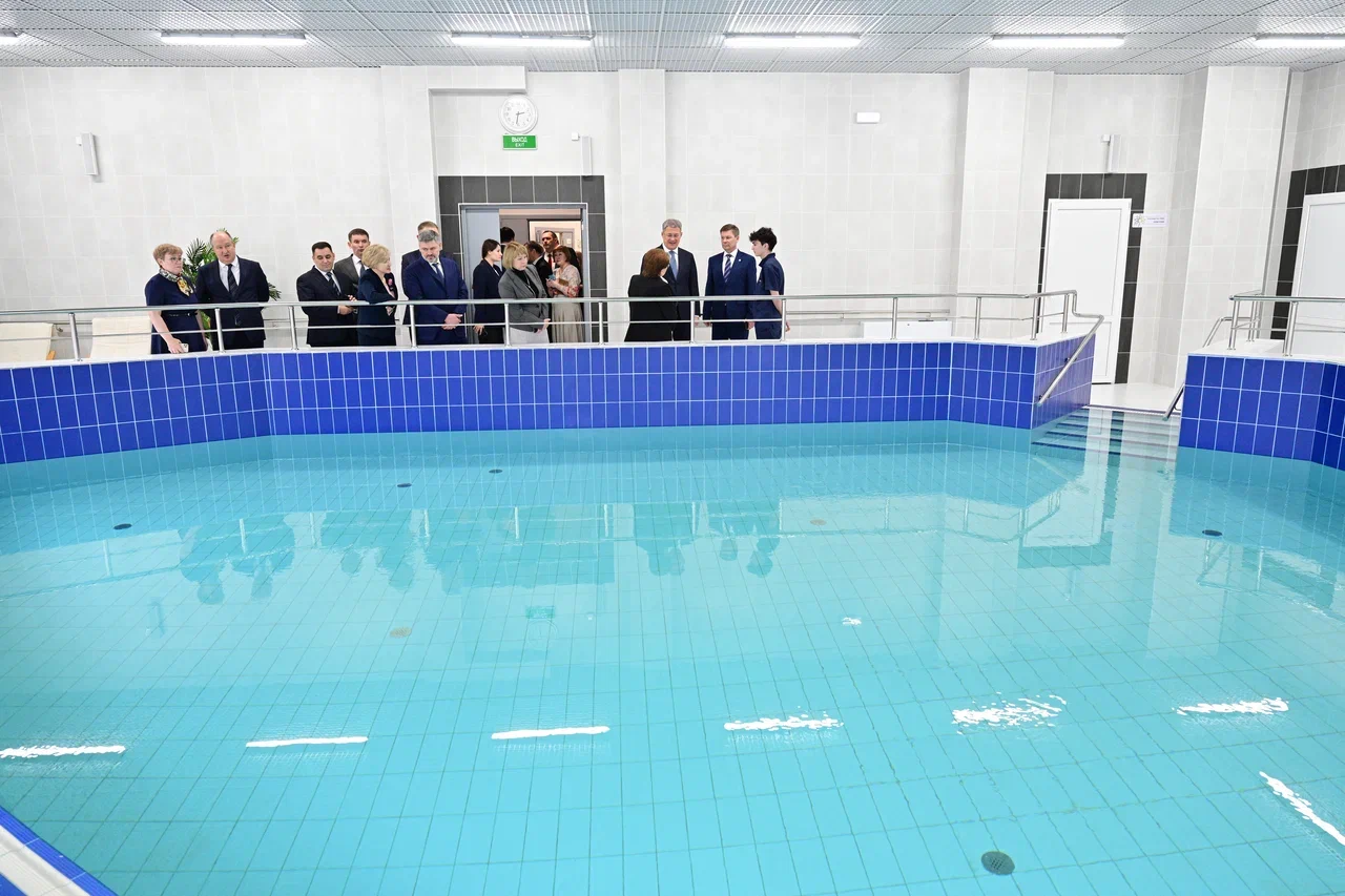 Гости осмотрели столовую, зал лечебной физкультуры, бассейн, процедурный кабинет, тренажёрный зал, а также жилые комнаты, в каждой из которых имеются санузел и душевая. Кроме того, на четвёртом этаже расположены медицинский и реабилитационный блоки, работают штатный врач и фельдшер. А также здесь функционируют кабинеты некоторых докторов из уфимской поликлиники № 50, которые проводят диспансеризацию проживающих в центре людей. На пятом этаже – административный блок.