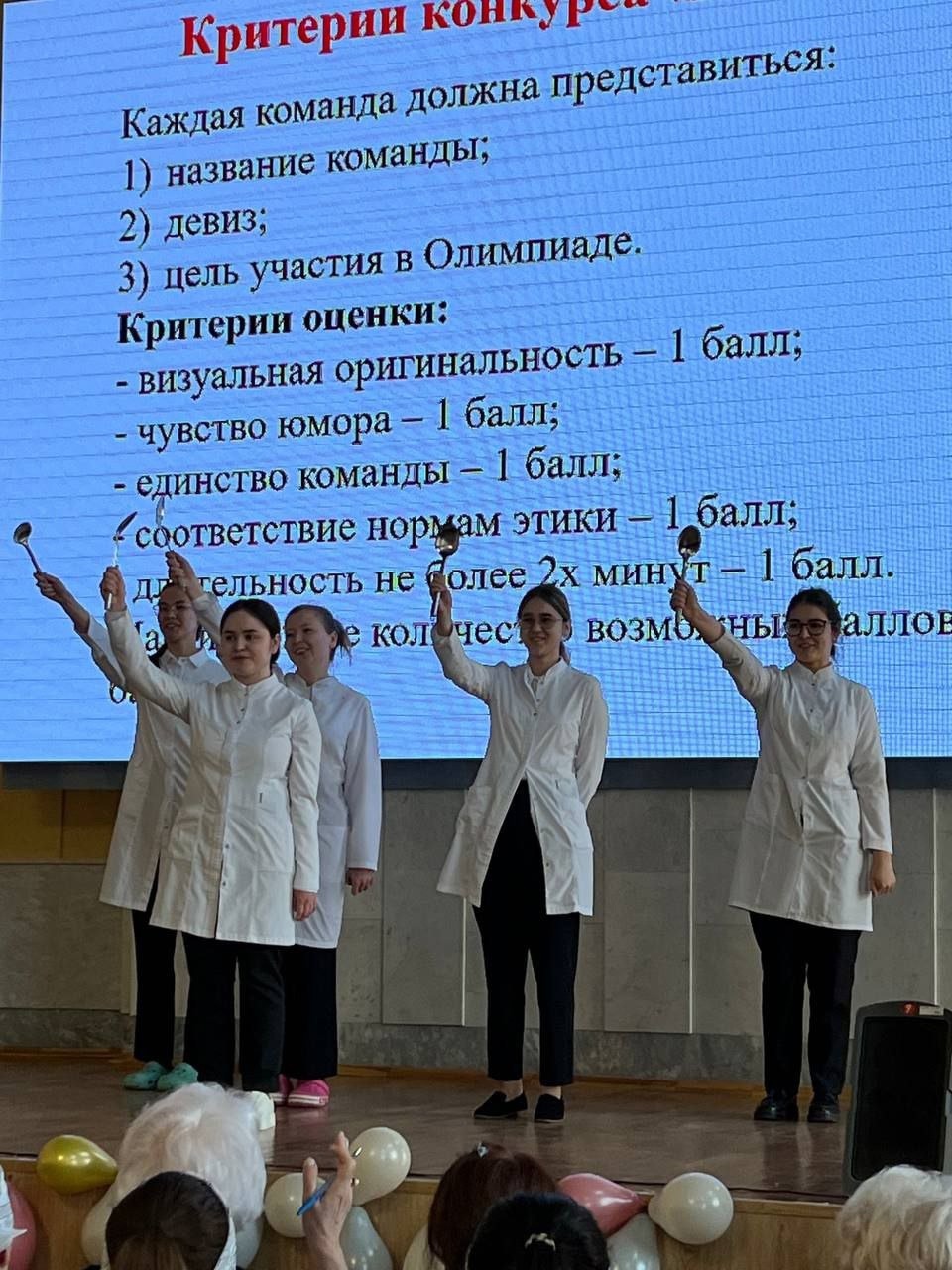 В первом конкурсе каждая команда представляла оригинальные приветствия и девизы. В туре "Умники и Умницы" студенты, проявив смекалку, разгадывали клинические синдромы. В конкурсе "Битва капитанов" соревновались в знаниях по истории педиатрии, латинского языка, инновационных достижений медицины. Решению задач по питанию и составлению меню детям разного возраста был посвящен конкурс "Детский шеф-повар". На двух завершающих этапах Олимпиады ребята показали практические навыки, а также умения оказания неотложной помощи детям в различных клинических ситуациях.