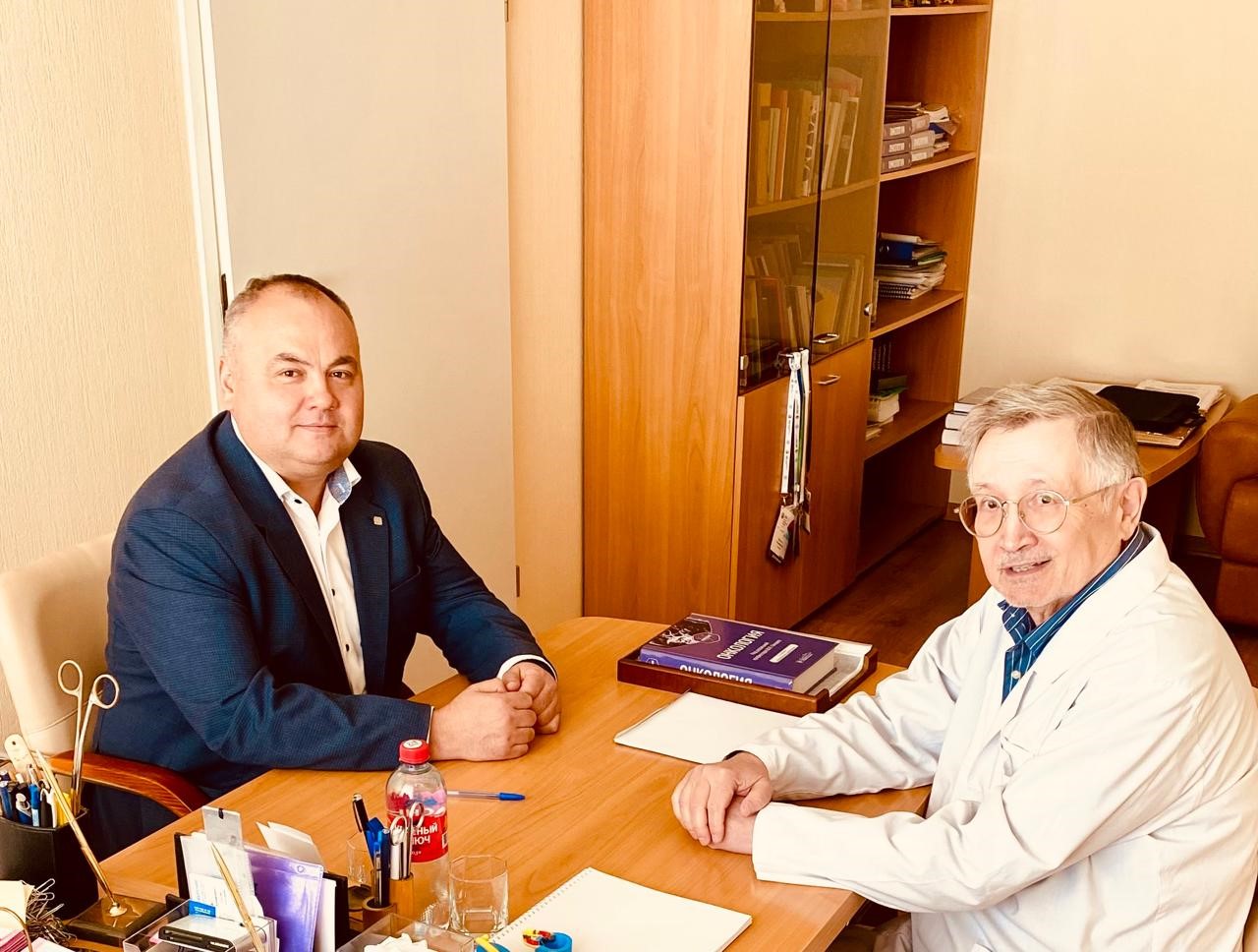 С рабочим визитом кафедру онкологии и клинической морфологии посетил проректор по научной работе доцент Ишемгулов Руслан Радикович. В ходе встречи, прошедшей в тёплой и деловой атмосфере, состоялся конструктивный диалог с заведующим кафедрой профессором Ш.Х. Ганцевым, преподавателями и соискателями учёных степеней.
