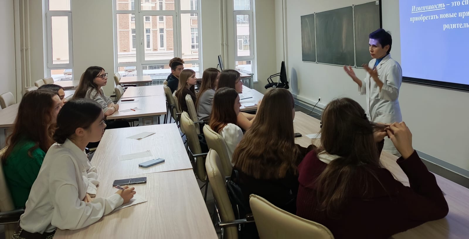 На кафедре биологии под руководством заведующей кафедры д.м.н. профессора Викторовой Татьяны Викторовны школьники познакомились с экспонатами музея и работой кафедры. Обучающий мастер класс для ребят провела доцент, к.б.н. Гуламанова Гюзель Ахтяметдиновна.