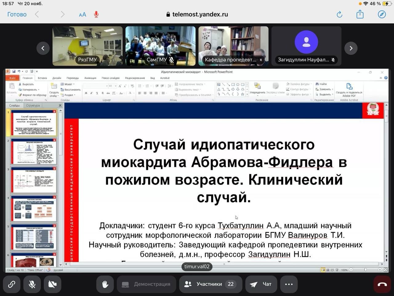 20 ноября 2025 года впервые состоялось межвузовское заседание СНК кафедры пропедевтики внутренних болезней с участием четырех медицинских университетов: СамГМУ, РязГМУ, БГМУ(г.Минск, Беларусь) и БГМУ Минздрава России (г. Уфа).