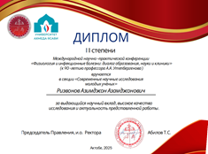 На пленарном заседании Конференции выступила заведующая кафедрой нормальной физиологии, д.м.н., профессор Каюмова Алия Фаритовна с докладом «Физиология как предмет дополнительного образования обучающихся медицинских классов». На секции «Физиология как фундаментальная наука» студент фармацевтического факультета Яшпатров Даниил был награжден дипломом 1 степени (научный руководитель д.б.н., профессор Шамратова В.Г. и к.б.н., доцент Зиякаева К.Р.). На секции «Современные научные исследования молодых учёных» студенты стоматологического факультета Ризвонов Азимджон и Загайнов Глеб были награждены дипломом 2 степени (научный руководитель к.б.н., доцент Тупиневич Г.С.)