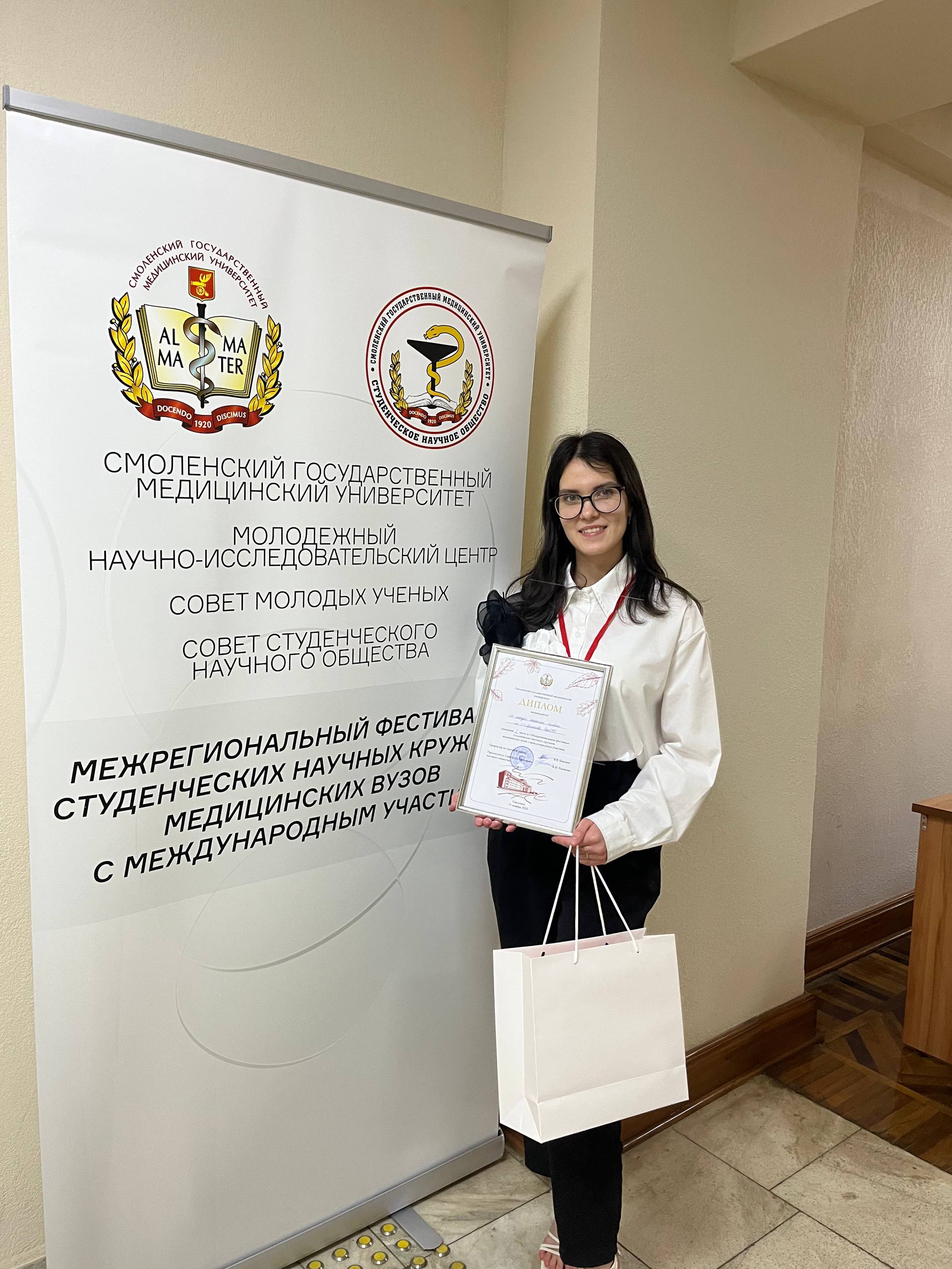 21 ноября 2025 года в стенах Смоленского государственного медицинского университета состоялся I Межрегиональный фестиваль студенческих научных кружков медицинских вузов с международным участием. Наш университет представляла староста НК кафедры анатомии человека им. С.З. Лукманоа, студентка 2 курса педиатрического факультета, Эльвина Ахметова.