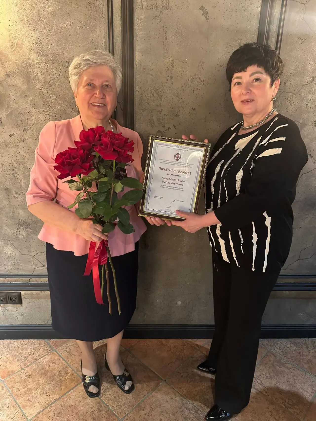 Грамоту по поручению Николая Николаевича вручила ученица Эльзы Набиахметовны - профессор кафедры госпитальной педиатрии Башкирского государственного медицинского университета, Президент Башкирского отделения АСПМ+, главный внештатный специалист неонатолог Министерства здравоохранения Российской Федерации в Приволжском Федеральном округе Виктория Амирова.