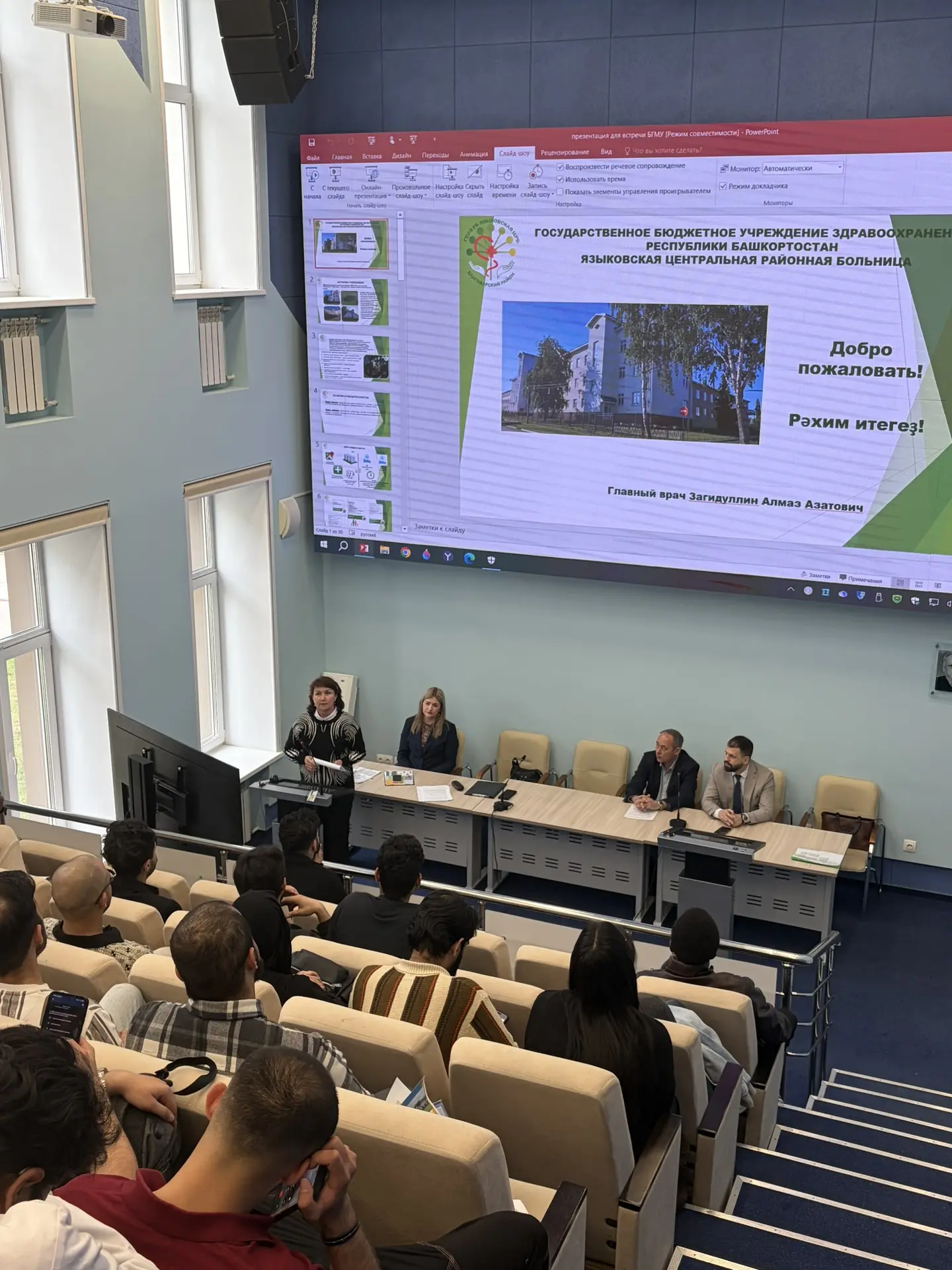 Об особенностях трудоустройства иностранных граждан, необходимых для этого документах и наличии актуальных вакансий поделилась в своем выступлении начальник отдела кадров ГБУЗ РДКБ - Сайфуллина Светлана Римовна. Она также отметила, что в настоящее время в РДКБ работают 28 иностранных студентов БГМУ, из них 21 в должности среднего медицинского работника и 7 в должности санитара.