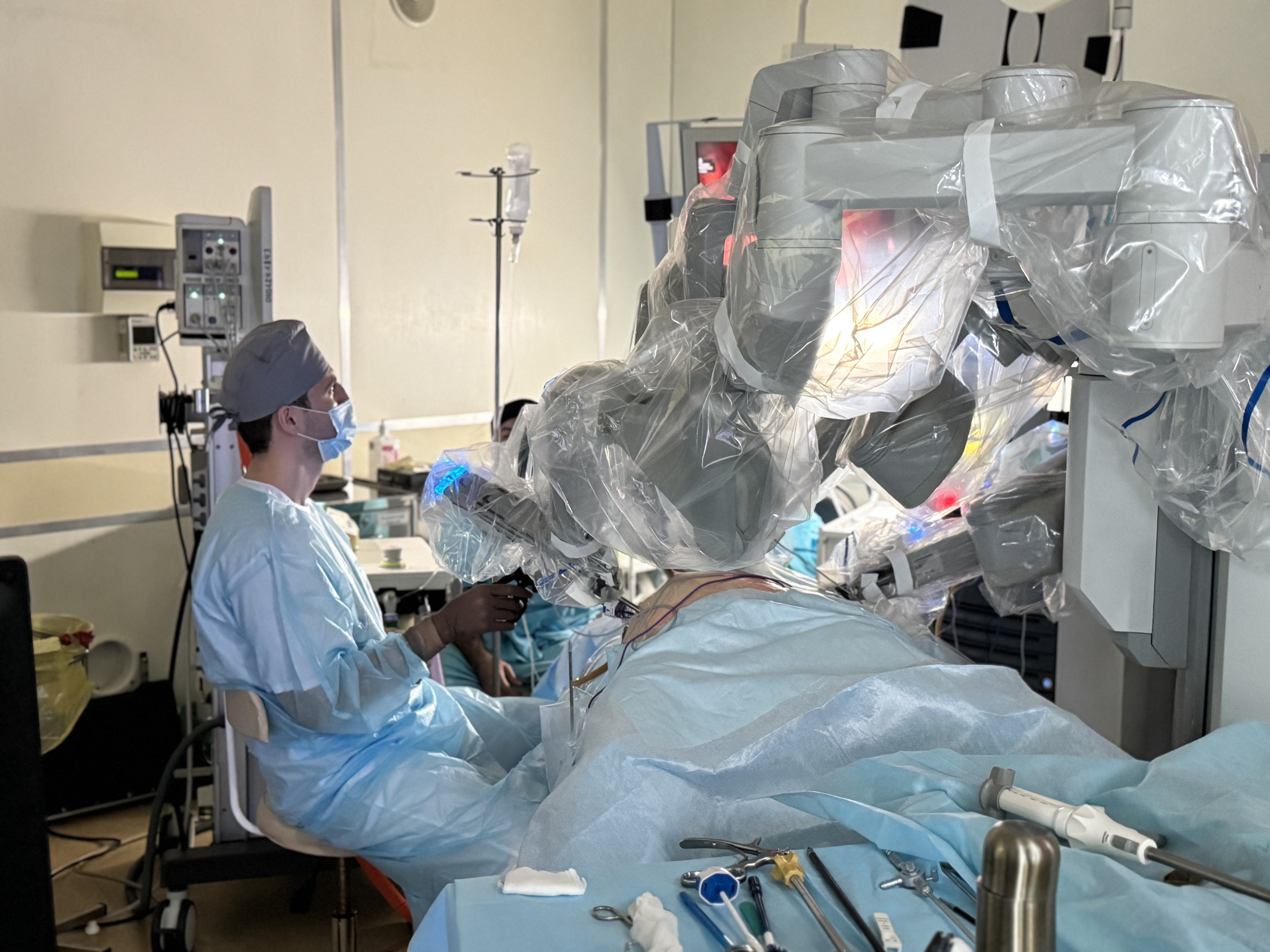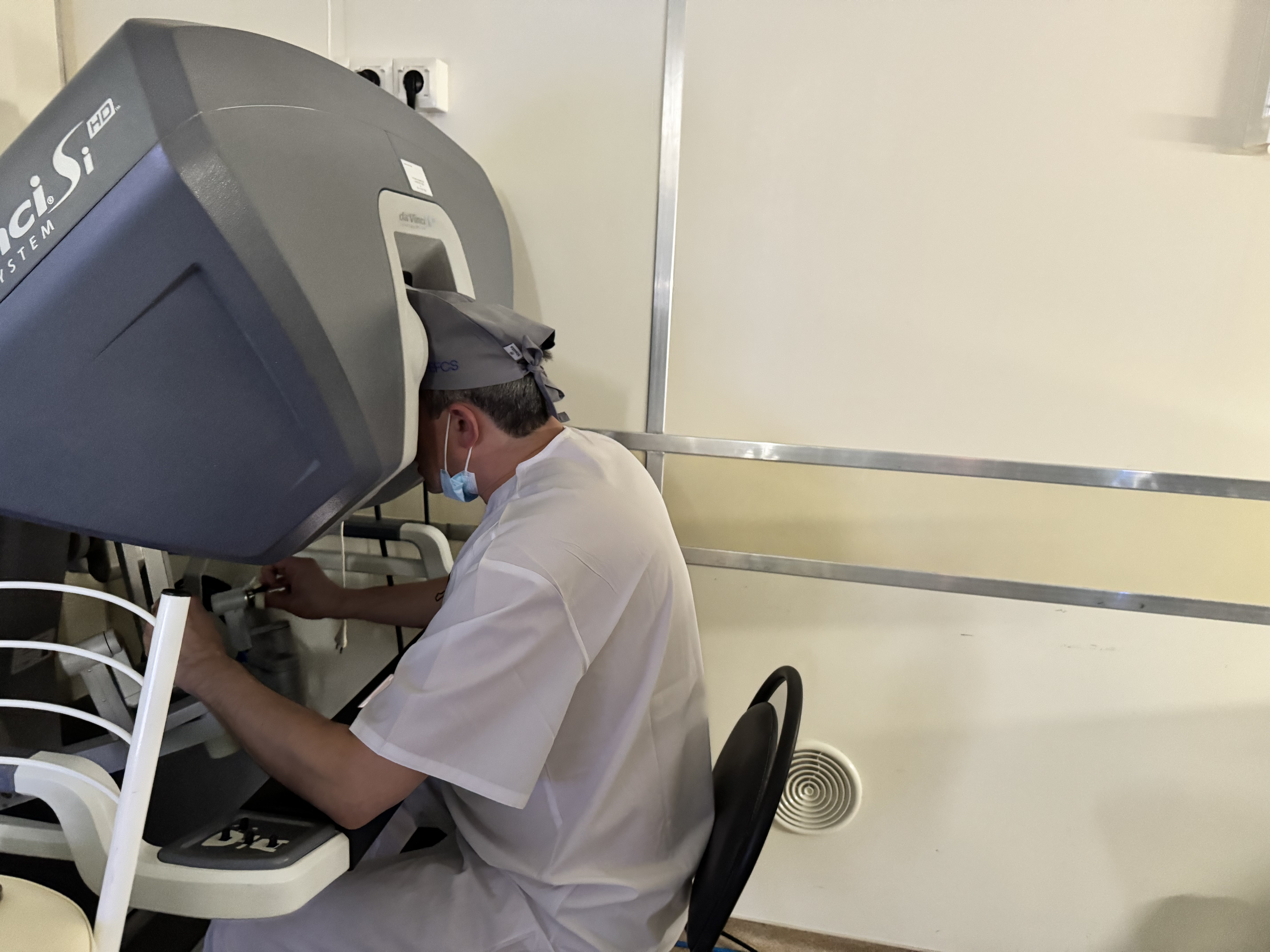 робот-ассистированная передняя резекция прямой кишки (оперирующий хирург - ведущий научный сотрудник отделения колопроктологии МКНЦ им. А.С. Логинова, доктор медицинских наук, профессор кафедры ФНМО РУДН Вячеслав Алиев);