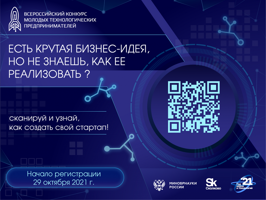 Министерство науки и высшего образования Российской Федерации объявляет открытие регистрации на Всероссийский конкурс молодых технологических предпринимателей, организуемый при поддержке Фонда «Сколково». Заявки на участие принимаются до 10 ноября.