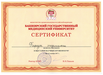 Для участия в 83-ой Всероссийской научной конференции студентов и молодых ученых «Вопросы теоретической и практической медицины» (г. Уфа, 23 апреля 2018 г.), кафедрой были подготовлены обучающиеся на секцию «Гигиена, эпидемиология и профессиональные заболевания», среди которых Сарвартдинова Г.Р. (МПФ-601Б) была награждена дипломом за лучший устный доклад среди студентов, Гараева Л.Р. (МПФ-601Б) - дипломом за лучший устный доклад, Хазиева С.Ф. (МПФ-601Б) - дипломом за интеграционный подход в решении научных проблем.