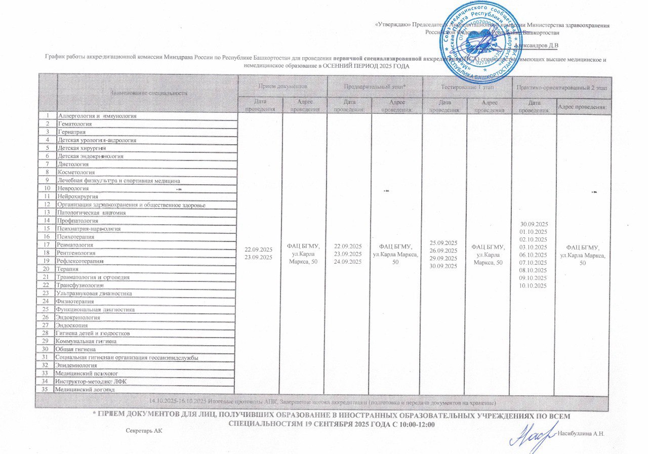 График первичной специализированной аккредитации 1 поток,летний период 2021 Башкортостан