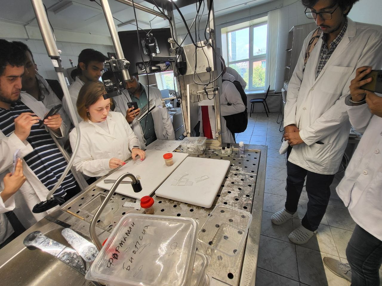 Within the framework of the strategic academic leadership program "Priority 2030" and in order to organize effective leisure time during summer holidays on July 16-23, a series of master classes "Experimental workshop" was held on the basis of the Department of Pharmacology with a course of clinical pharmacology under the guidance of Professor A.V. Samorodov. Students were introduced to the basic principles of GLP, the rules of work in laboratories and humane treatment of experimental laboratory animals, alternative to animal models experimental systems. International students took part in practical classes on working out the technique of registering blood pressure, taking blood samples, the technique of administration of the studied agents and drugs. Also, during the master-classes, the students were mastering practical skills of intraoperative monitoring of laboratory animals and necropsy, modeling of thrombosis of the inferior vena cava, nephrectomy and liver resection. In the second part of the master-classes, students took direct part in in-vitro experiments to assess the effect of potential drug candidates on the hemostasis system and cardioprotective activity via perfusion of an isolated heart using Langendorff technique. Several visual aids and samples (equipment, consumables, video demonstrations) were demonstrated, including for conducting morphological studies in a digital morphological classroom. We hope that holding these master classes will contribute to increasing the popularity of a researcher's career and interest in fundamental science.