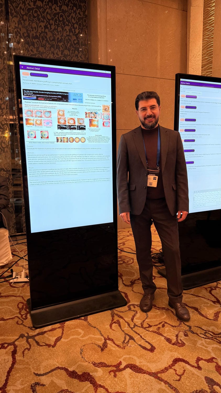 Representatives of the delegation of the Ufa Eye Research Institute, headed by the director, Professor M.M. Bikbov not only got acquainted with the latest world achievements, but also presented the results of their own scientific research. As a part of the congress, a report was presented by the head of the department of cornea and lens surgery, MD E.L. Usubov on the topic: "Efficacy and safety of phacoemulsification cataract with prophylactic injection of Faricimab in patients with diabetic retinopathy" (M.M. Bikbov, E.L. Usubov, G.Z. Israfilova). The report aroused keen interest among an international audience and served as an occasion for productive professional discussions with colleagues from the countries of the Asia-Pacific region. And also a poster presentation by the head of the department of corneal and lens surgery, MD E.L. Usubov on the topic: "Amnioplasty for the treatment of corneal ulcers".