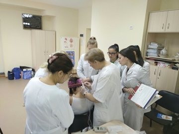 Профессор Ахмадеева Лейла Ринатовна продемонстрировала врачам, ординаторам и студентам методики восстановления различных препаратов ботулинического нейропротеина типа А, подбора доз, мышц-мишей, навигации для ин"екций как с помощью электронейростисулятора "МИСТ", так и по анатомическим ориентирам, видео- и фото-протоколирования пациентов со спастическими кривошеями, блефароспазмами, синдромом Мейжа, хроническими мигренями. Были приглашены как пациенты, регулярно получающие ботулинотерапию в Клинике БГМУ, так и пациенты, которым эти ин" екции проводятся впервые.