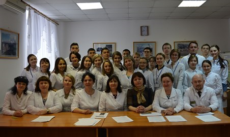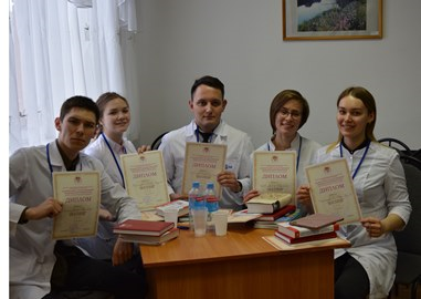 В состязании приняли участие обучающиеся 4 и 5 курса лечебного факультета. 5 сборных команд соревновались между собой в эрудиции, глубине познаний внутренней медицины, креативности и способности к командной работе. На суд уважаемого жюри, состоявшего из cотрудников кафедры факультетской терапии и администрации ГБУЗ РБ ГКБ №5 г. Уфы под председательством заведующего кафедрой профессора Мирсаевой Г.Х., были вынесены видеоматериалы, подготовленные студентами заранее, на тему «Мы и терапия», устные и письменные ответы на вопросы в конкурсах «Эрудит», «Блиц», «Я учусь лечить». Заключительным этапом явилось выступление капитанов команд о том, какой они видят медицину будущего. Борьба за призовое место между командами была по настоящему напряженной, и интрига «кто же будет победителем?» сохранялась до самого последнего момента. После окончательного подсчета баллов за конкурсы лучшей была признана команда «Quinta essentia” (капитан Обухова Н.Т., члены команды – Шарафутдинова И.Ф., Фахрисламова Э.И., Тихонов А.В., Бикметов Т.В.), с небольшим преимуществом по количеству набранных очков она обошла команду «Во все легкие» (капитан Каримова Г.И, члены команды – Гаитгалина А.И., Гилемзянова С.И., Мухамедьянов Ш.М., Нурмухаметов Р.А.). На третьей позиции в турнирной таблице расположилась команда «Аритмия» (капитан Полянина Е.В., члены команды - Халиуллина Г.У., Хакова Г.Д., Стуколова А.В., Стуколова В.В.), на четвертой – команда «Вскрытие покажет» (капитан Насыров М.А., члены команды - Биккулов М.М., Кайгородова Е. С., Лютов О.В., Вардикян А.Г.), на пятой – «Синдром Х» (капитан Низамова А.Х., члены команды Халиева Б.М., Зуйкова Е.С., Хасанбекова Г.И., Таипова Л.У.). По решению жюри отдельными призами и дипломами были награждены студенты, проявившие себя во время Олимпиады наиболее ярко. Так, в номинации «Лучший эрудит» была отмечена Хакова Гузель, за «Оригинальность мышления» награжден Вардикян Андраник. Член жюри профессор Мавзютова Г.А. особо отметила студентов Хакову Гузель, Каримову Гульназ и презентовала обеим собственные монографии.