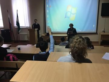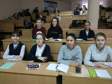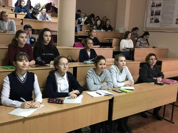Школьники с большим интересом выслушали выступление заместителя декана, ответили на вопросы викторины, получили презенты за свою внимательность и активное участие.