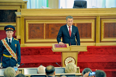 – Клянусь при осуществлении полномочий Главы Республики Башкортостан верно служить многонациональному народу Республики Башкортостан, укреплять и защищать государственность Республики Башкортостан, соблюдать Конституцию Российской Федерации и Конституцию Республики Башкортостан, гарантировать права и свободы человека и гражданина.