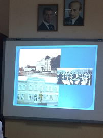 Далее показывая слайды и рассказывая об истории образования города, разговор постепенно перешел о сегодняшнем дне, о современном городе. Вместе с обучающимися была проведена заочная экскурсия по улицам и площадям города, были освещены главные достопримечательности города.