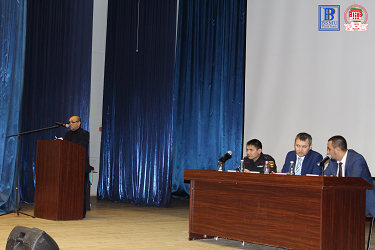 Проректор по безопасности Роберт Маратович Муллакаев своем выступлении он обратил внимание собравшихся на предупреждение противоправных действий и соблюдение правил безопасности.