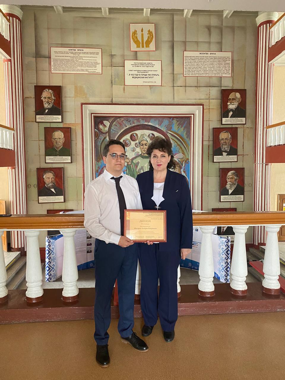 В конкурсе молодых ученых приняли участие студенты Шакиров Альберт, Набиева Карина под руководством профессора кафедры инфекционных болезней с курсом ИДПО Хасановой Гузель Миргасимовны. Тема стендового доклада «Мультисистемный воспалительный синдром у детей, ассоциированный с новой коронавирусной инфекцией COVID-19». Данная работа заняла 3 призовое место! Отрадно отметить, что наши студенты заняли призовое место, соревнуясь с аспирантами и молодыми учеными со всей России, что указывает на высокий потенциал научной школы БГМУ. Награды победители получили из рук академика РАН, доктора медицинских наук, профессора Малеева Виктора Васильевича.