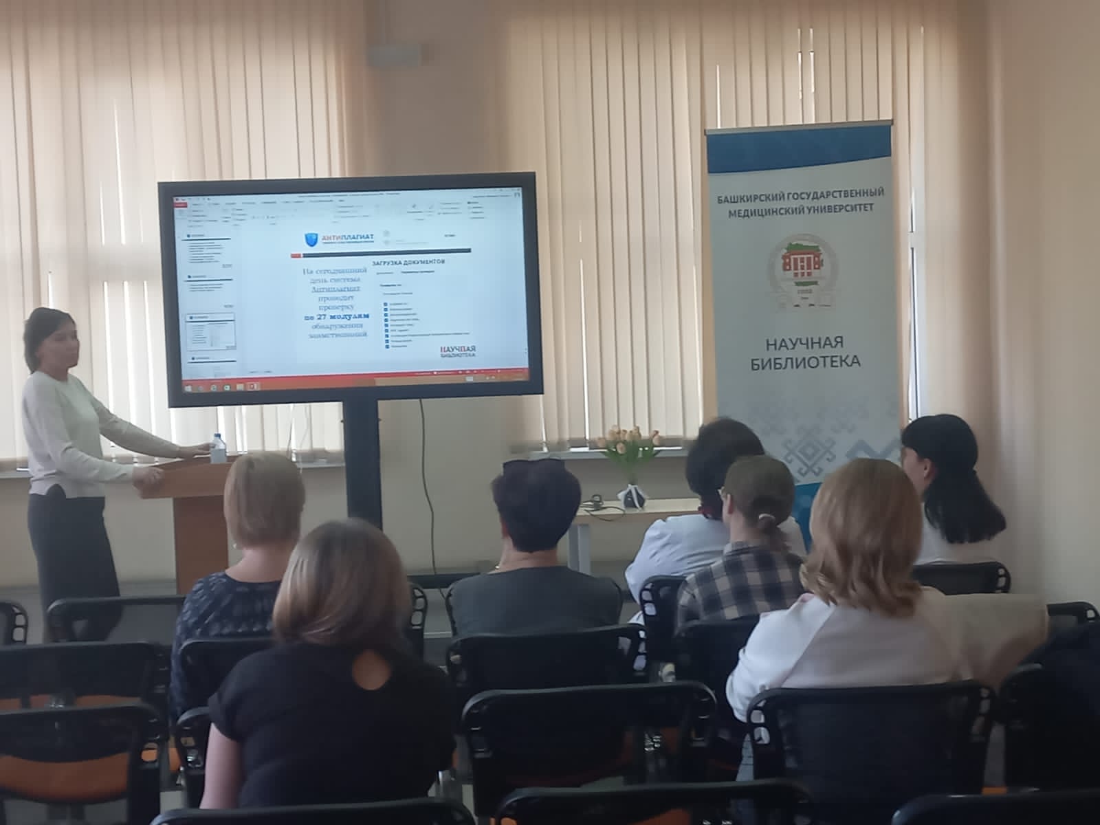 Заведующая отделом социокультурных коммуникаций Гайнуллина М.Р. провела мастер - класс «Мировые электронные ресурсы по медицине. Поиск научной информации», где преподаватели познакомились с российскими и зарубежными электронными ресурсами, научились эффективно искать информацию на единой строке поиска EBSCO Discovery Service, правильно формировать поисковый запрос.