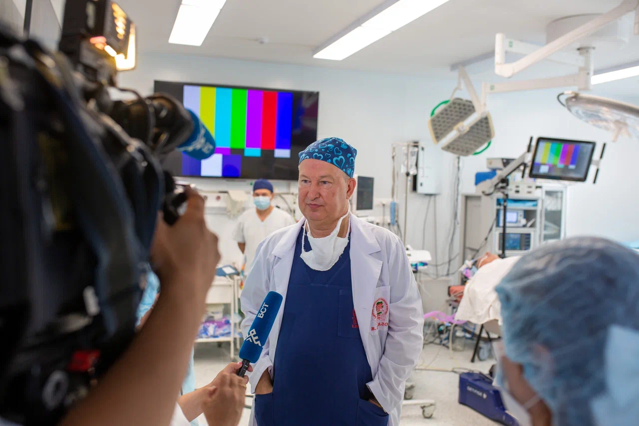 За трансляцией из операционной в режиме реального времени наблюдали студенты, ординаторы и врачи. С приветственным словом выступил ректор, академик РАН Валентин Николаевич Павлов.