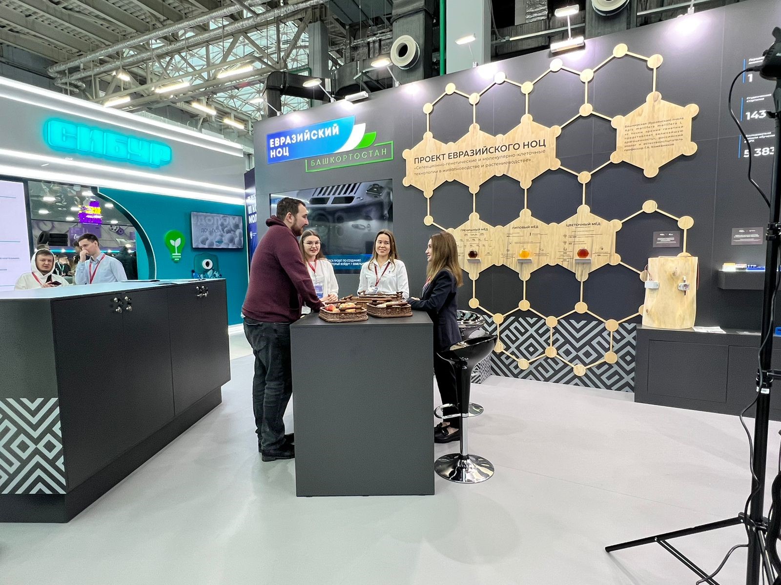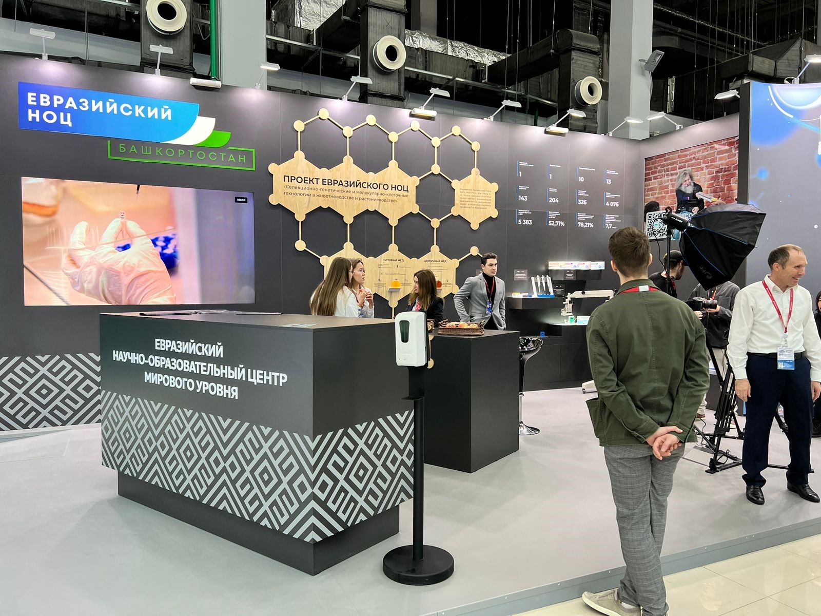 На объединенном стенде Евразийского НОЦ представлены уникальные разработки университетов и ученых НОЦ.