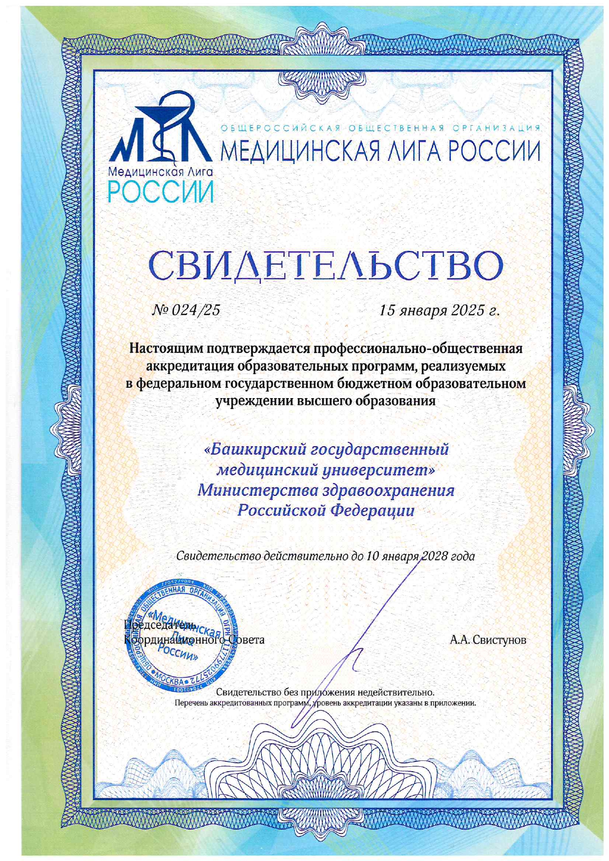 Эксперты Общероссийской общественной организации Медицинская лига России провели в Университете профессионально-общественную аккредитацию (по программам, заявленным к данным видам аккредитации).