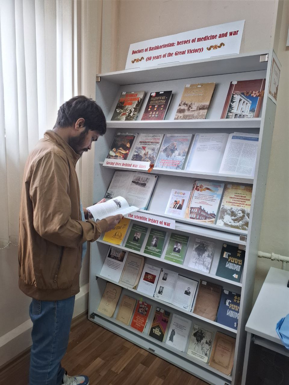 5 мая 2025 года в читальном зале иностранных обучающихся научной библиотеки БГМУ прошла презентация книжной выставки «Doctors of Bashkortostan: heroes of medicine and war». Книжная выставка приурочена 80-летию Победы в Великой Отечественной войне 1941-1945гг.