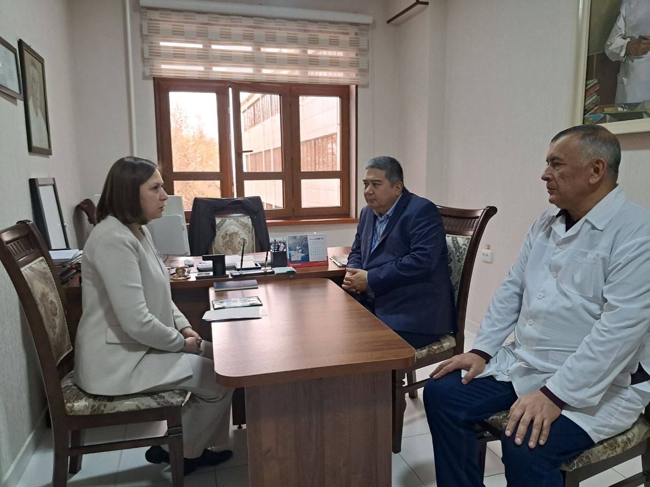 Также в ходе визита была намечена встреча с главным врачом Специализированной детской хирургической клиники Самаркандского государственного медицинского университета (Центр детской хирургии) Ж.А. Шамсиевым для обсуждения вопроса повышения квалификации медицинского персонала, возможности сотрудничества с медицинскими университетами для организации курсов повышения квалификации. Главный врач выразил заинтересованность в налаживании партнерства и сотрудничества с университетом, что может привести к улучшению качества медицинских услуг в регионе. Командировка в Самарканд позволила не только провести важную профориентационную работу, но и установить контакты для дальнейшего сотрудничества в области повышения квалификации медицинского персонала. Результаты встречи открывают новые горизонты для развития медицинского образования в регионе.