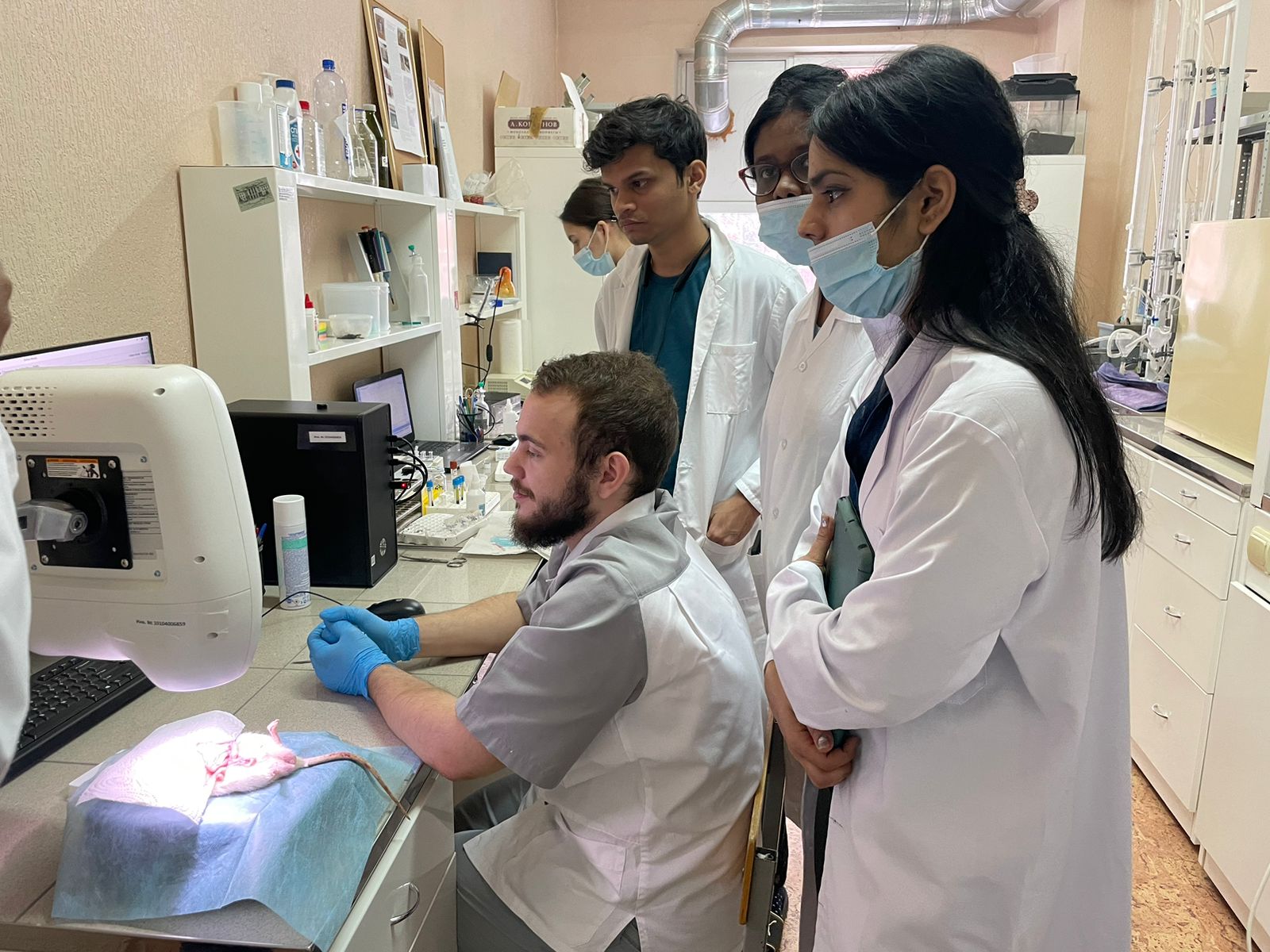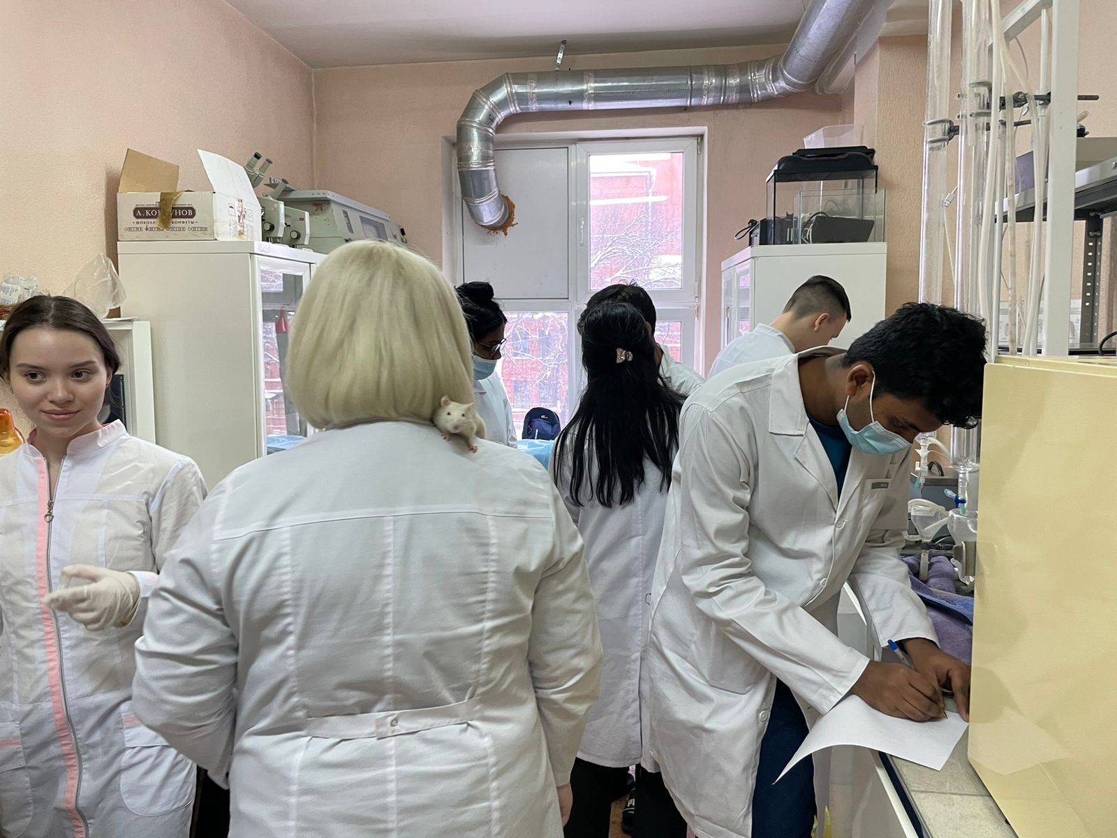 За данный период студентов ознакомили с основными принципами надлежащей лабораторной практикой (GLP, good laboratory practice), правилами работы в лаборатории и гуманного отношения к экспериментальным лабораторным животным, альтернативными модельными системами и экспериментальными моделями для исследования фармакологической активности лекарственных веществ, а также имели возможность оценить эффект различных лекарственных средств в эксперименте на животных. Проводилась отработка практических навыков по исследованию токсичности лекарственных препаратов, интраоперационному мониторингу лабораторных животных и проведению некропсии, моделированию тромбоза нижней полой вены и оценке кардиопротективной активности в условиях перфузии изолированного сердца на установке по методу Лангендорфа, демонстрацией результатов проведенных исследований в условиях цифрового морфологического класса.