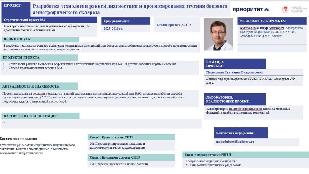 Разработка технологии ранней диагностики и прогнозирования течения бокового амиотрофического склероза